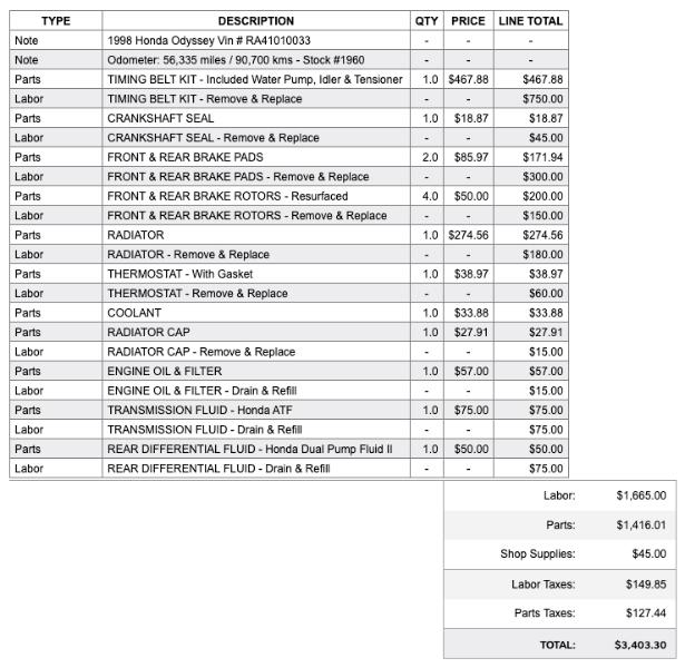 Same 2.3L F23A Gas Engine as USA Honda Odyssey